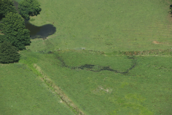 Overflow path from pond to farm drain.