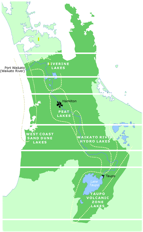 Waikato Regional Council has divided the Waikato region's lakes into five distinct and separate categories. The categories are based on where they are located and how they were formed.